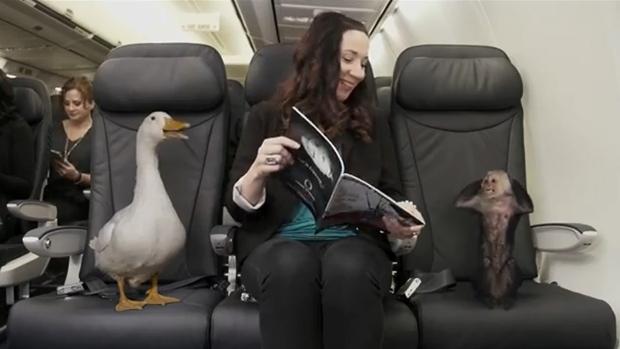 WestJet allows animal passengers to roam free on board its aircraft in a scene from the airline’s April Fool’s Day video.