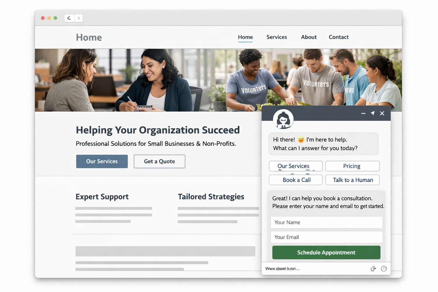 For organizations with extensive content: associations, non-profits, educational institutions, resource-heavy businesses. Answers questions about your services, programs, policies, and resources – directing people to the right information instantly.