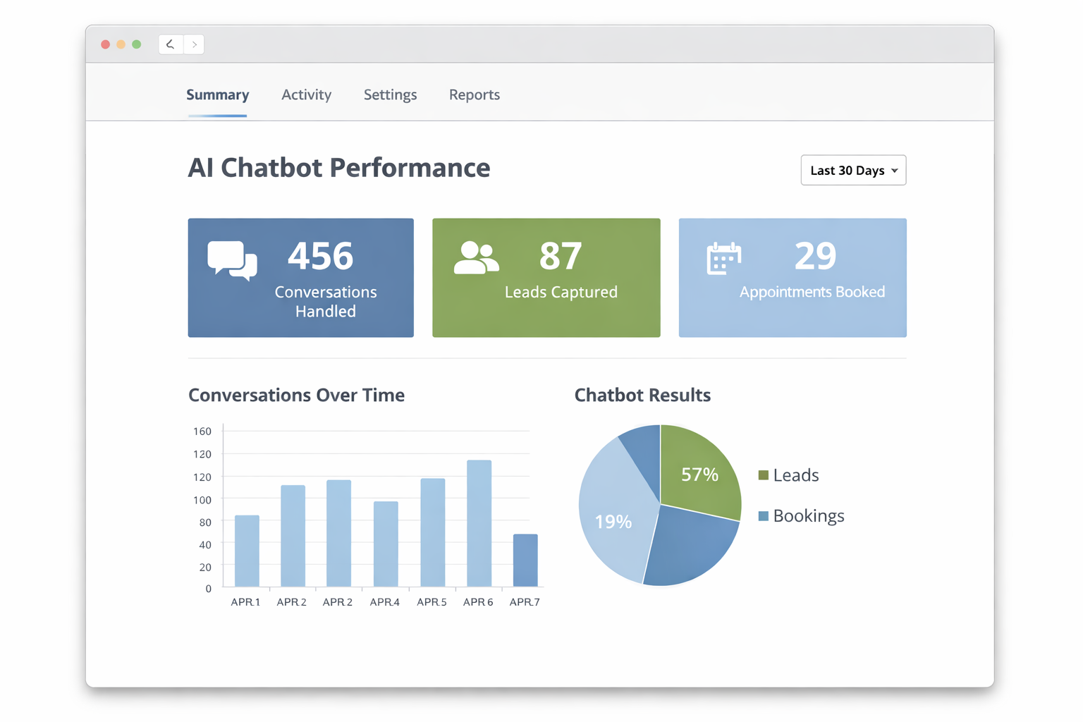 After-hours lead capture up 45%. Chatbot qualifies prospects and books consultations while the team sleeps. Only serious inquiries reach the sales team – chatbot handles tire-kickers.